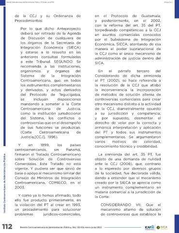 de la CCJ y su Ordenanza de en el Protocolo de Guatemala;