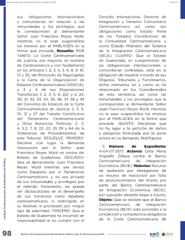 Centroamericana de Justicia; 2, 5, 6, Juan Francisco Reyes Wyld, mientras
